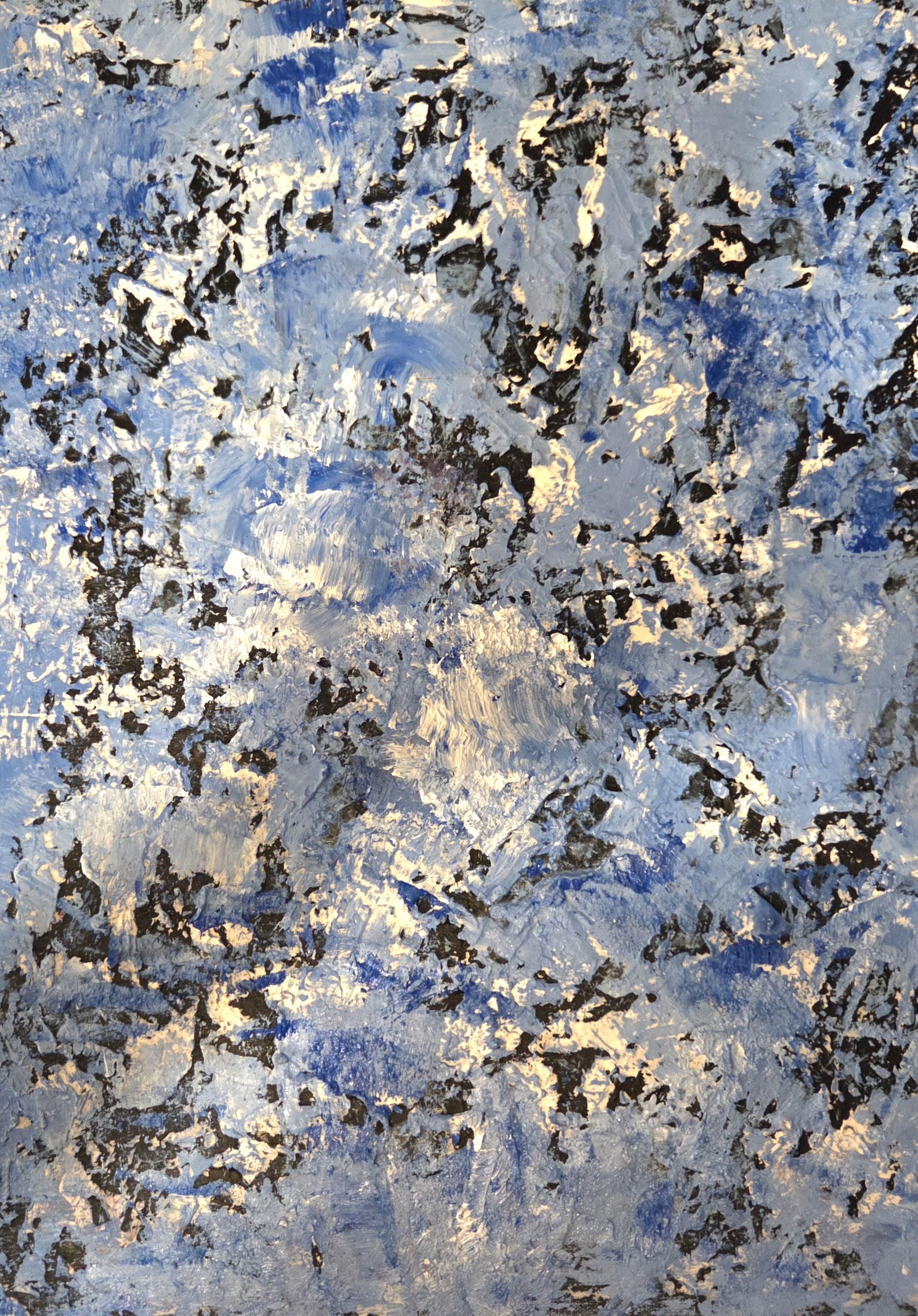 Very textured, "impasto" effect. Subtle shades of blue with black and white. this 20x24 conversation piece is a prfect accent with any stle of decor.