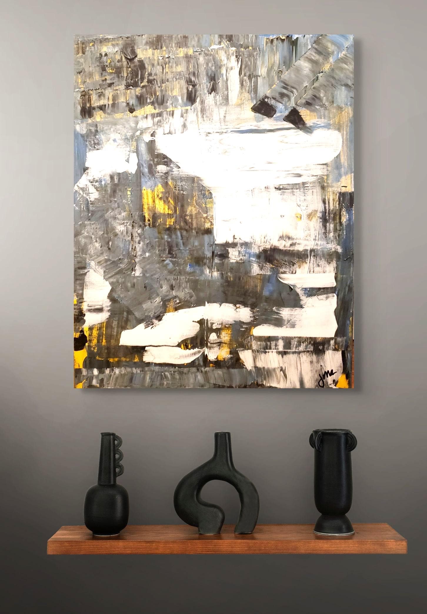Original Abstract Acrylic Painting: Colorful , white grey yellow black 22x28