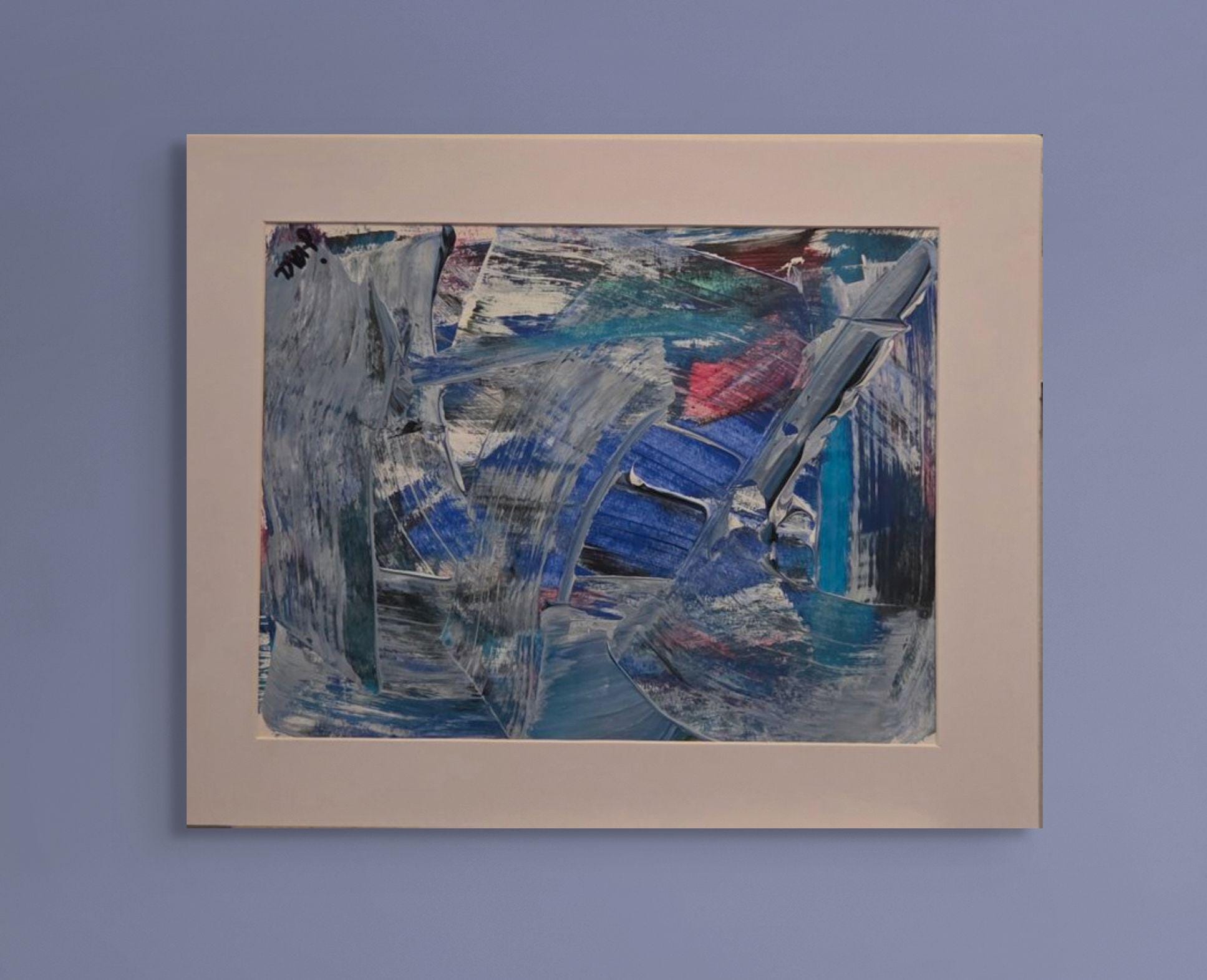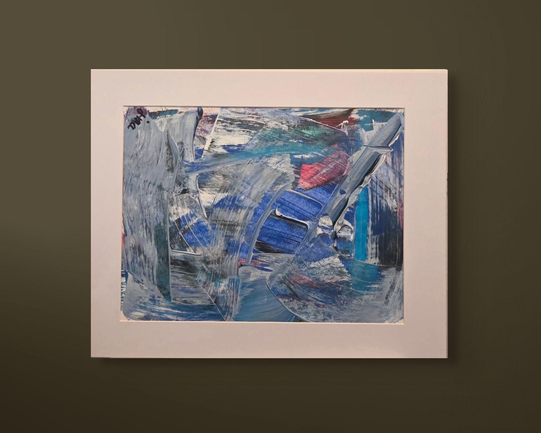 This is an original abstract painting in acrylic on art paper. The painting is matted with an outer edge of 11x14 modern vibe. See photos to view heavy texture for visual interest.